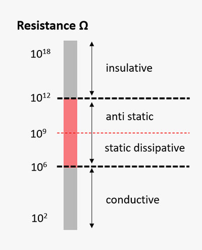 The insulation or outer jacket of the cable uses a non-conductive material for insulation, and in order to prevent static electricity, the non-conductive material must be made in the range of semi-conductive material so that it is still an insulator but static electricity can be dissipated. So, the targetted Static electricity dissipation range for anti-static electricity is 106 to 109Ω.